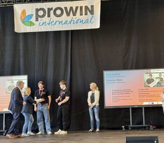 Paul Sohns mit Valerius West (Projekt Arbeitswelt) und Nikan Zanjani (Bio-Projekt) wurden jeweils Landessieger und erhielten zusätzliche Sonderpreise.