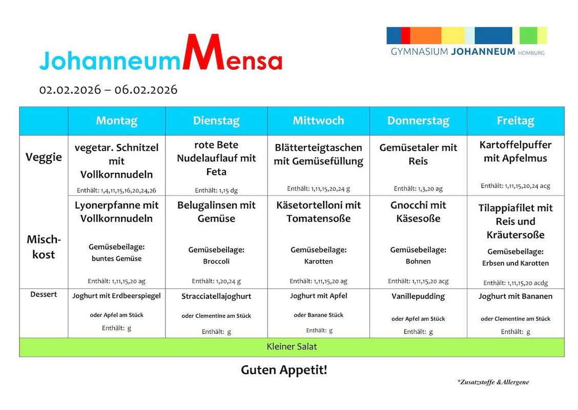 Mensa-Speiseplan für die aktuelle Woche